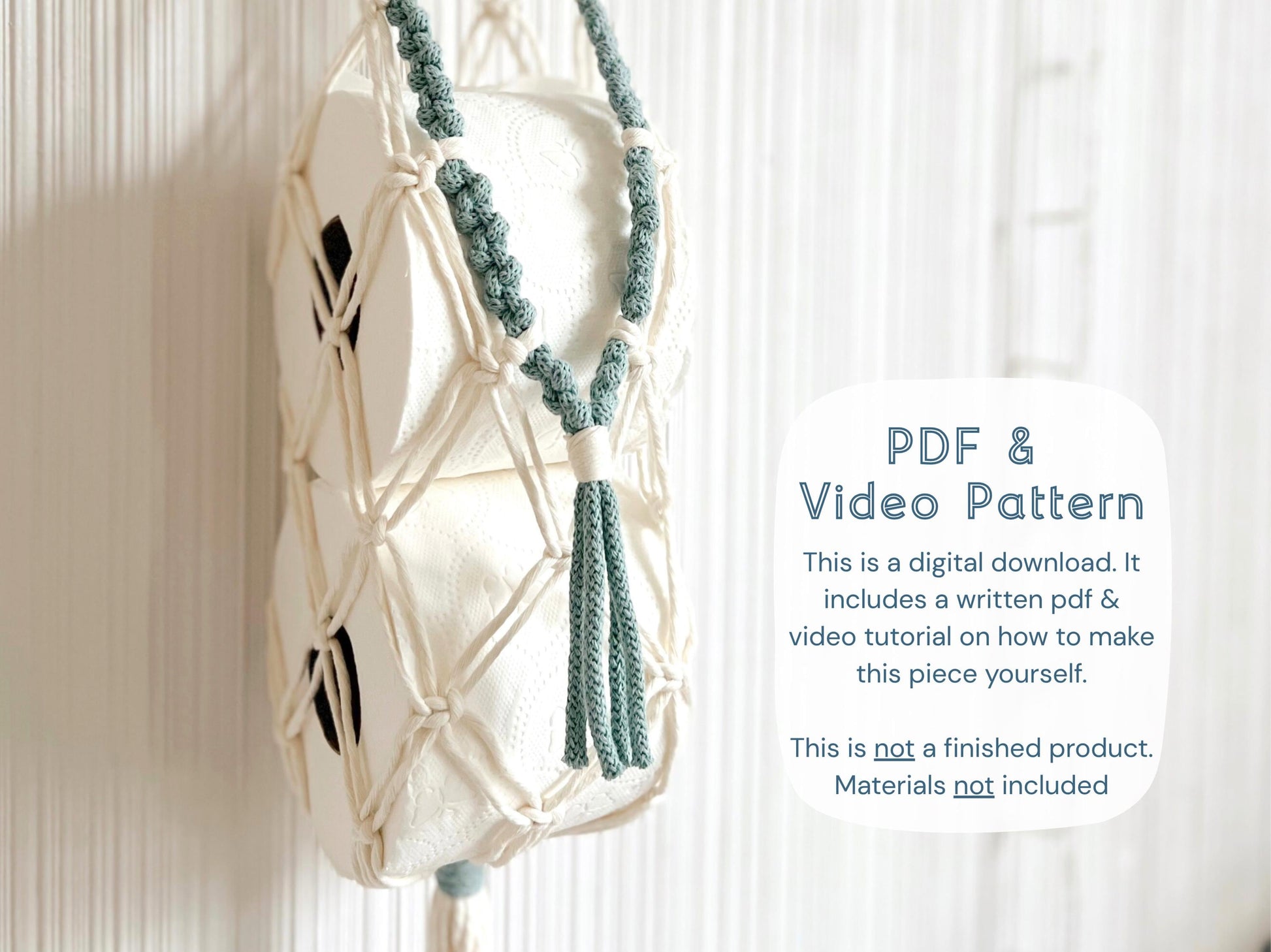 This is a digital PDF PATTERN and Video Tutorial (instant download) of the macrame TP basket hanger shown in the pictures. It contains a step-by-step written tutorial as well as a full image guide on how to complete this project. The pattern also includes descriptions of all things needed, but it does NOT include any of the actual materials. It is only a digital download. It is written in English.