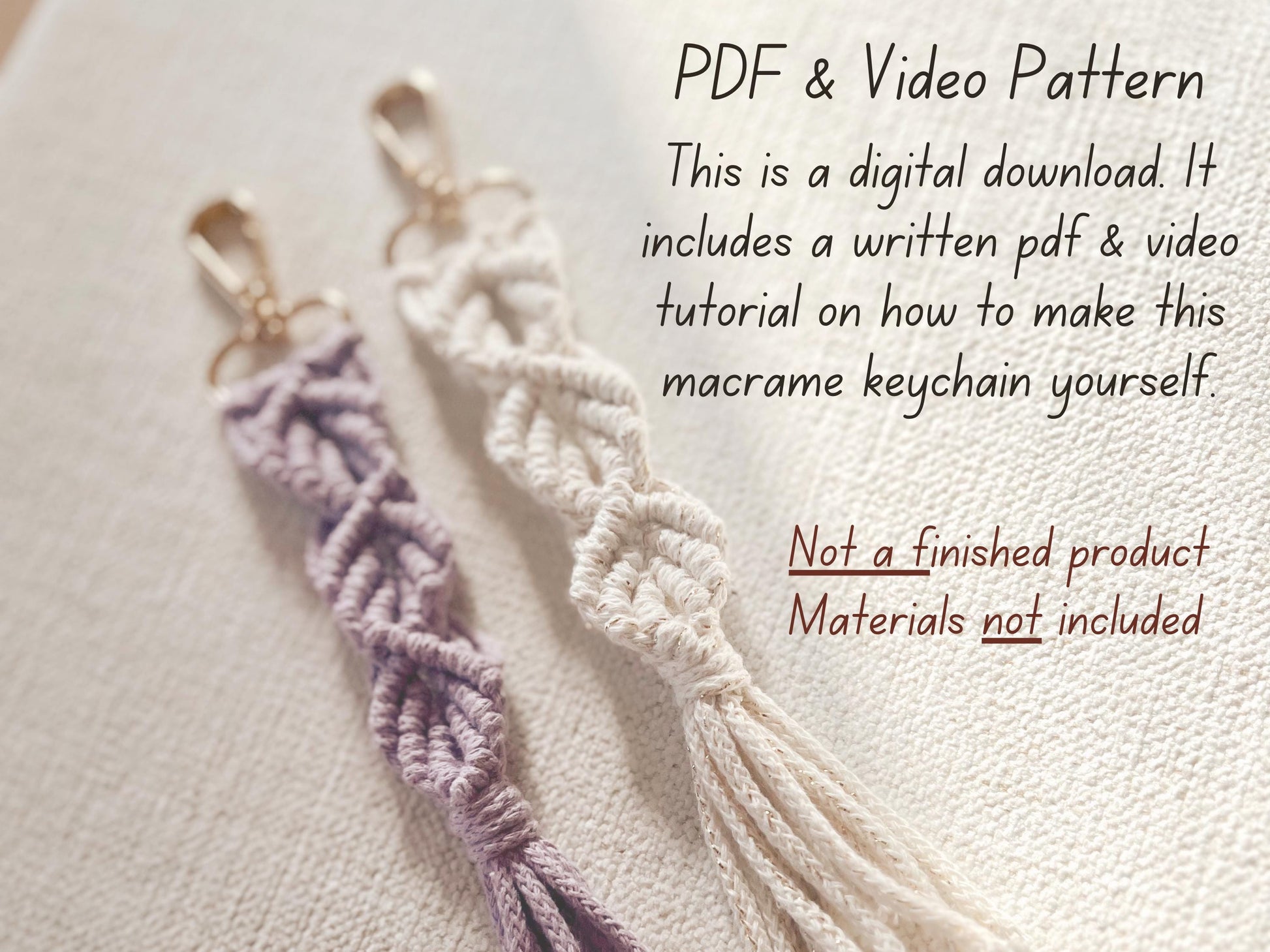 Macrame PATTERN - Written PDF, Video Tutorial and Knot Guide Included, DIY macrame keychain, Instant Digital Download